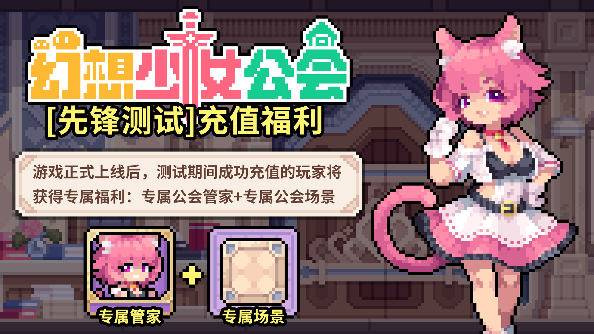 本次测试期间,成功充值的玩家将会在游戏正式上线后获得:专属管家皮肤+公会场景。