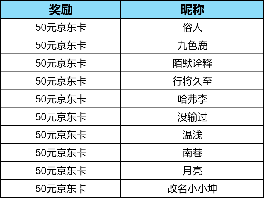 恭喜以下冒险者在本次活动中中奖,还请查看获奖名单: