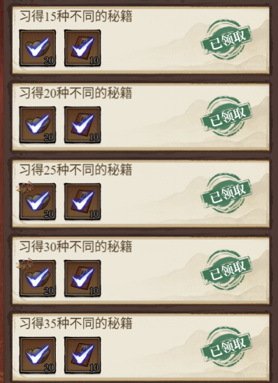 习武之人当然得多学秘籍!秘籍到手,【探索度】自然也收入囊中。当然秘籍也是取之有道。