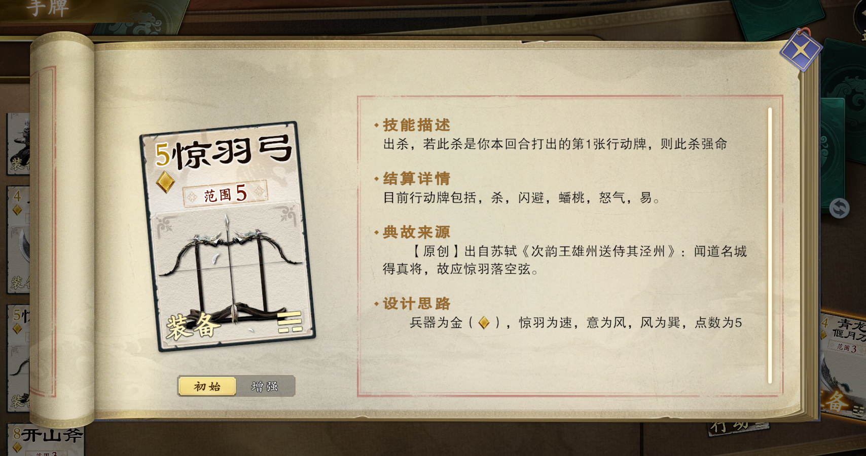 先发制人:项梁核心技能,造成杀伤时可获得目标角色卡牌,并且提升手牌上线,并且敌方回合自动出杀。