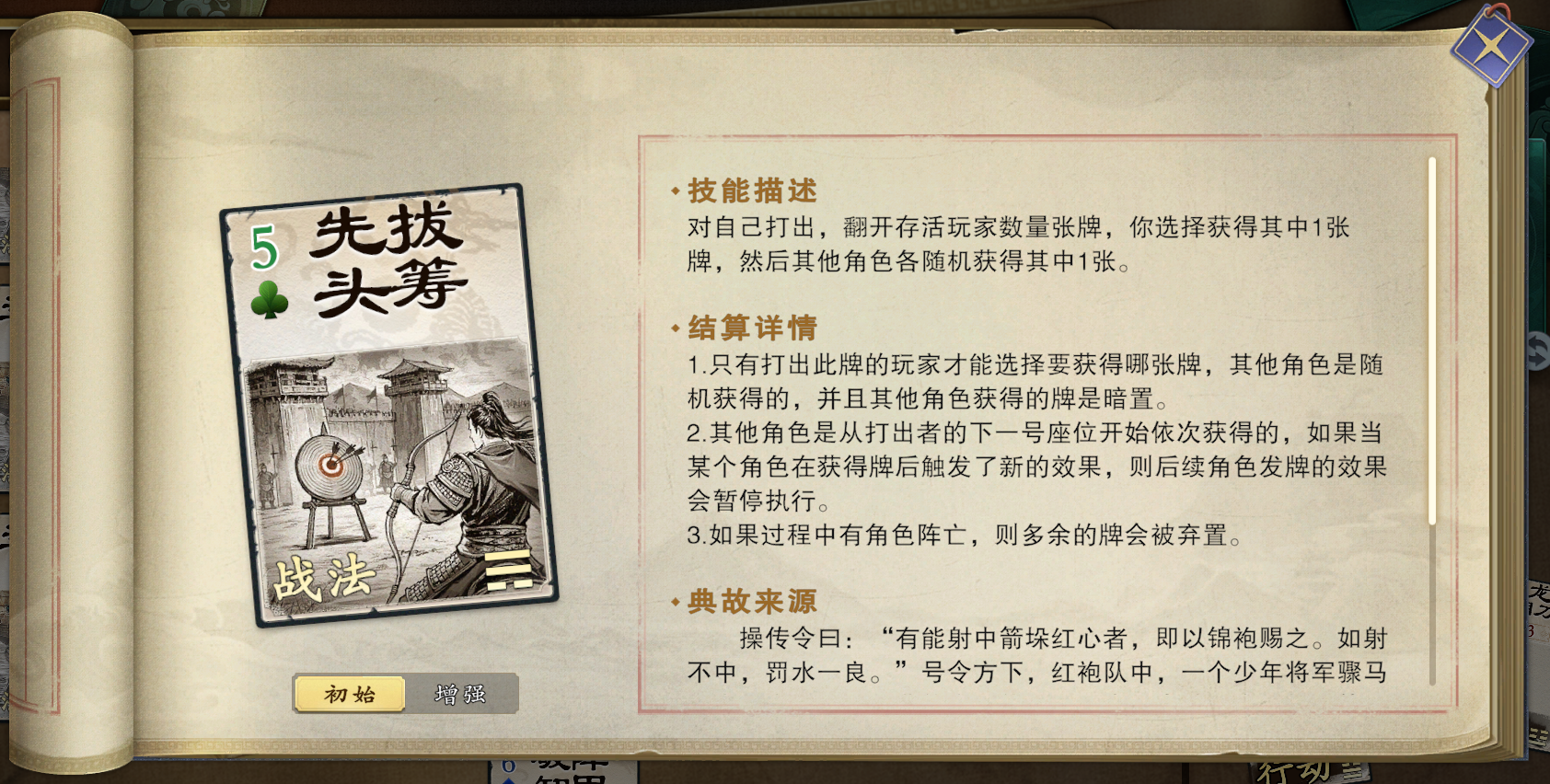 补牌对于节奏、胜负的影响都很大,比较简单,不用过多解释。在补牌时要注意自身生命值、手牌上限,在没牌时使用最好。