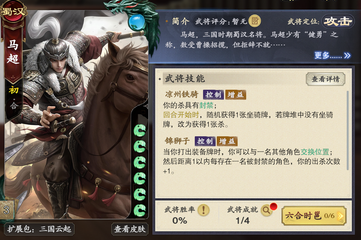 、马超可以直接封禁十常侍技能,十常侍失去“获得手牌”能力后会变得更加好打。我们队伍中的刘备可以将所有的牌都给马超,来让马超直接打输出。