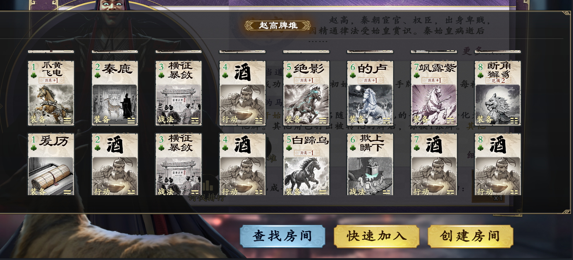 赵高拥有特殊的牌堆,给大家简单介绍一下,大家可以预备应对的策略(比如留识破)。