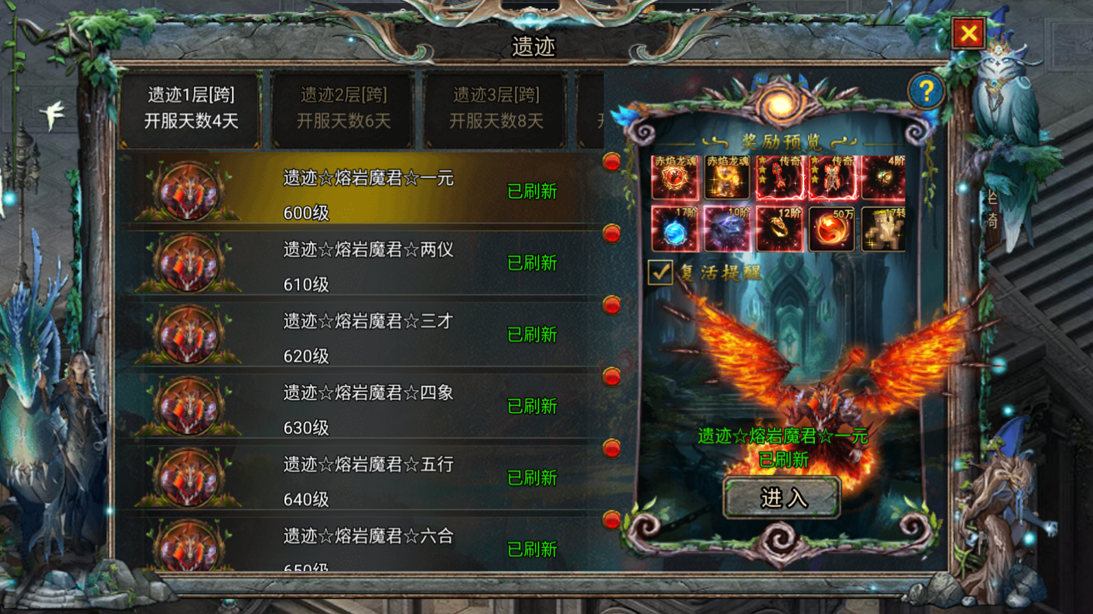 2、遗迹BOSS会掉落稀有的幻装装备,穿戴后提升大量属性;