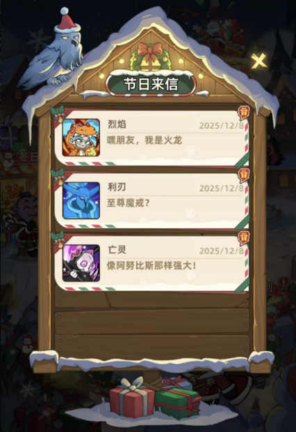 字里行间都是伙伴们的冬日祝福,拆开信封还能收获他们精心准备的礼物,让冒险之路不再孤单。