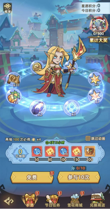 消耗「雪花」即可许愿,每次许愿,都会获得惊喜好礼。