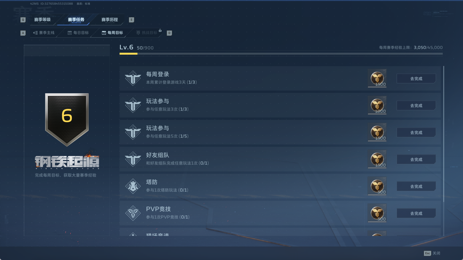 这里提升赛季等级最快的方式是完成每日和每周目标任务。