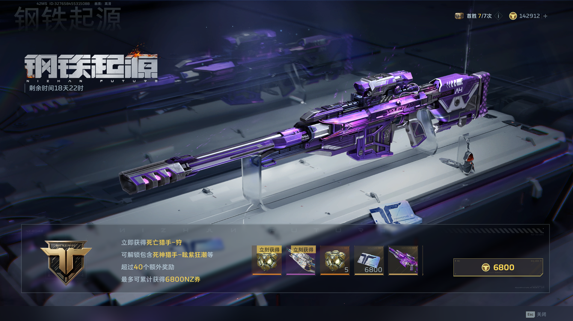 除武器皮肤、角色、陷阱换肤外,还有售价6800NZ点的通行证,购买后能够直接获得紫色品质的武器,在累计提升等级后也能获得金色品质武器,还有部分游戏资源等。