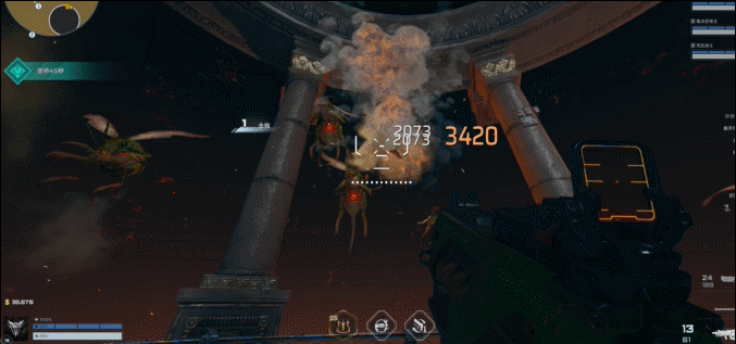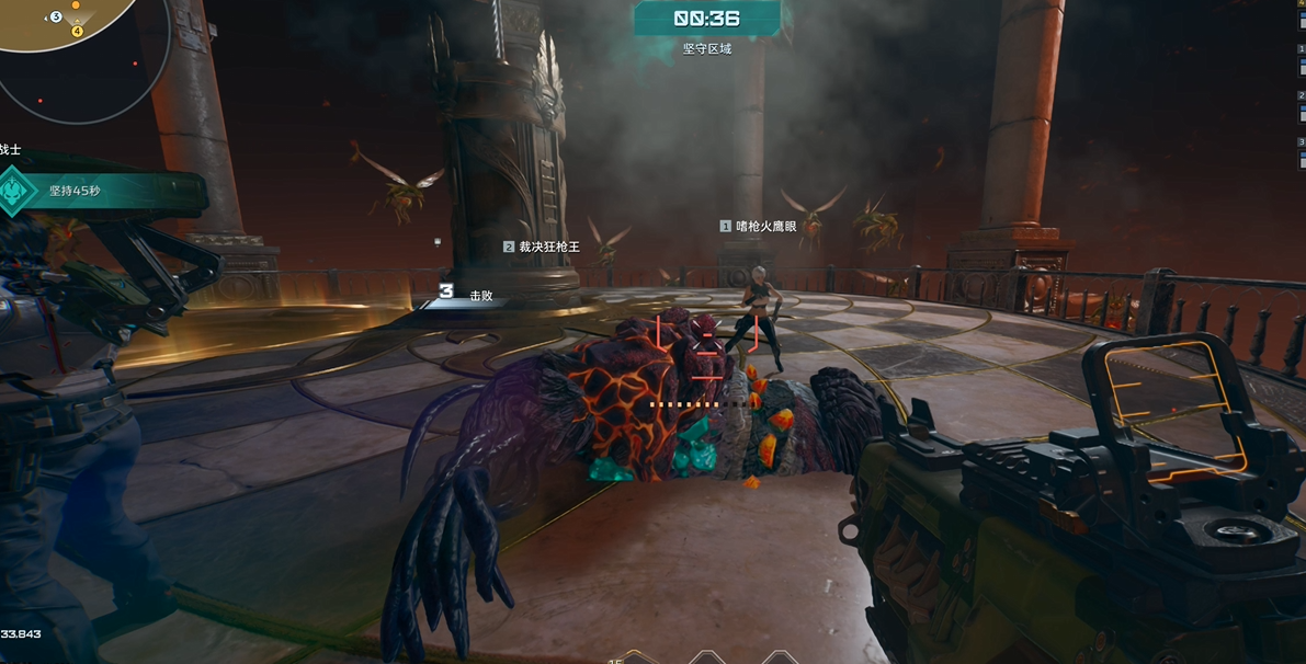 在升降平台逆行者们需要坚守45秒,保证不被团灭的情况下尽量击杀现场怪物。此区域的主要怪物并不在地面,而在空中的飞行怪物,飞行怪物的血量并不厚且是成堆出现的,大可以待它们汇聚在一块,再使用武器一次击杀;而对于地面出现的怪物,数量是不及空中怪物数量的,很好清理。