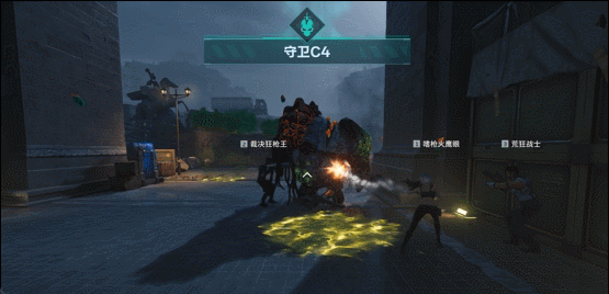 成功安放C4后,怪物将从三个方向涌来,分别是左右两侧的箱子顶端和正前方的山顶处,正前方伴有空中怪物袭来;此时人员分配以左右各一人,正前方2人来共同清理;在清理的时间内也不要专注于只管自己这块区域,在队友处有大量怪物时也可以帮助清理,第一是减轻队友压力,第二是可以乘机刷一波金钱,便于打BOSS时提升攻击力。