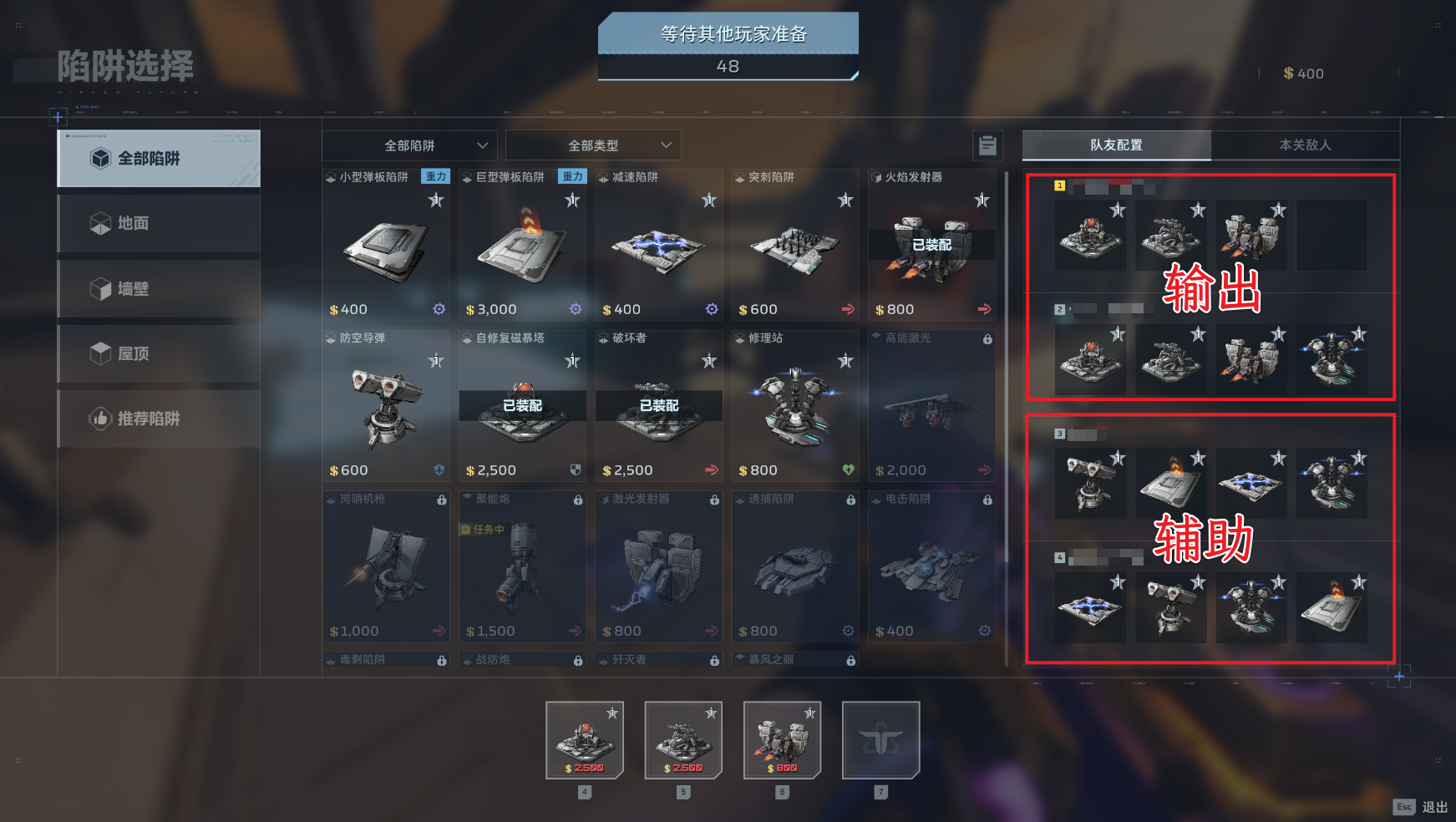 如果不太熟悉,可以参照同侧辅助玩家的陷阱布局(由于地图对称),也可以打字虚心请教。学习过程中注意观察输出位的陷阱放置方式,为日后转型积累经验。