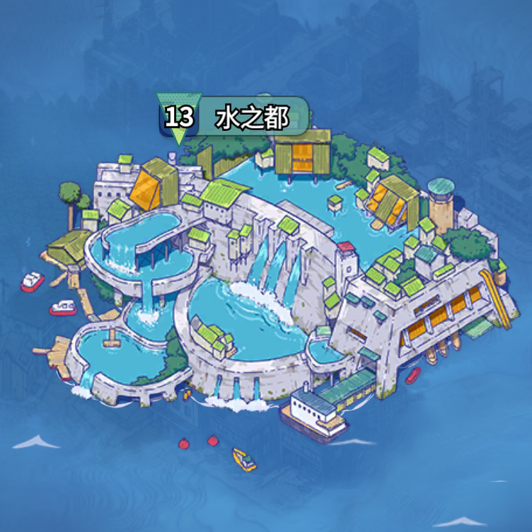 水世界的地图被四大势力分割:太阳岛、铁锈湾、风栖港和水之都。