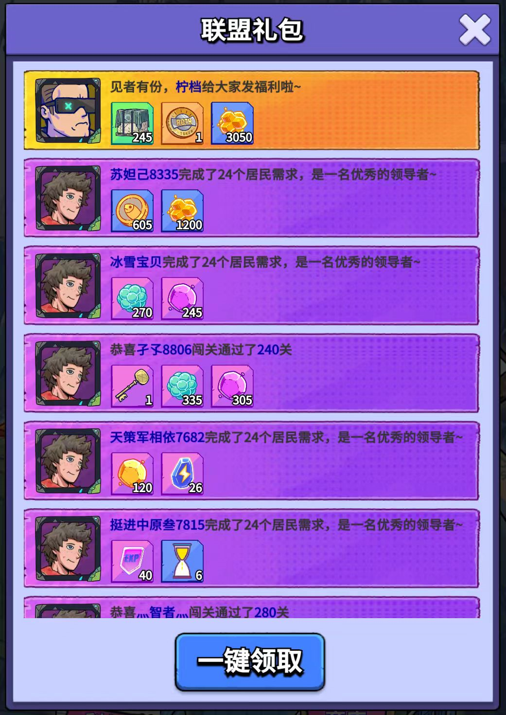 联盟成员达成以下任何一条都会为联盟带来联盟礼包,联盟所有玩家贡献,白嫖大量奖励!