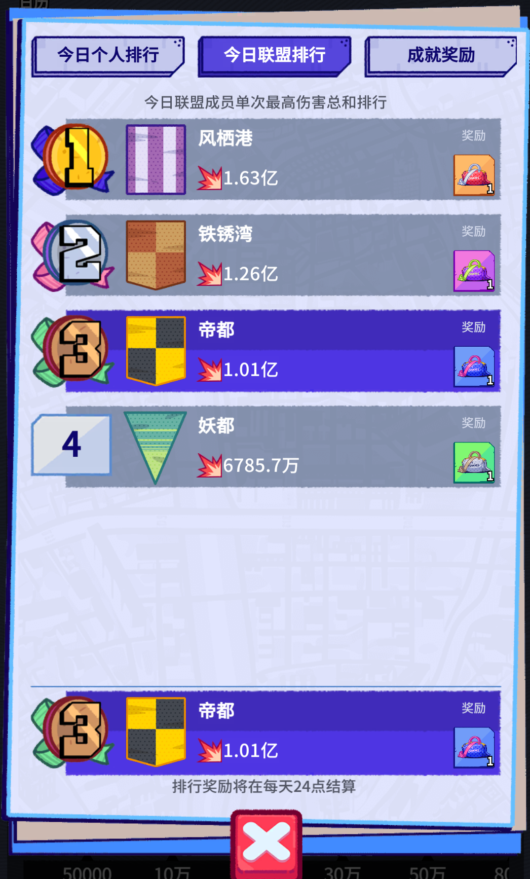 2、联盟排行奖励: