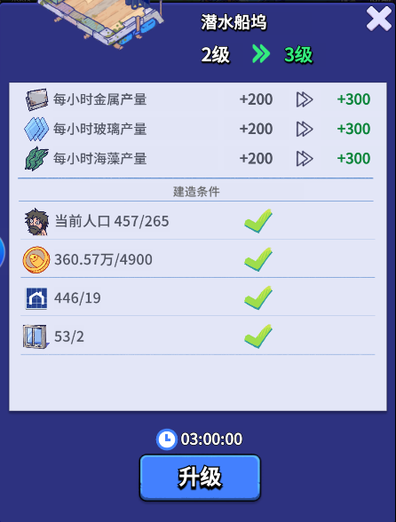 潜水船坞的升级优先级大于钓鱼椅,因为这个小设施是提供3种基础产量