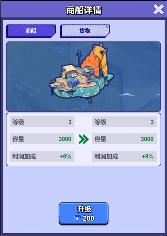 升级商船可以提升船容量、利润率等,使每次交易事半功倍!