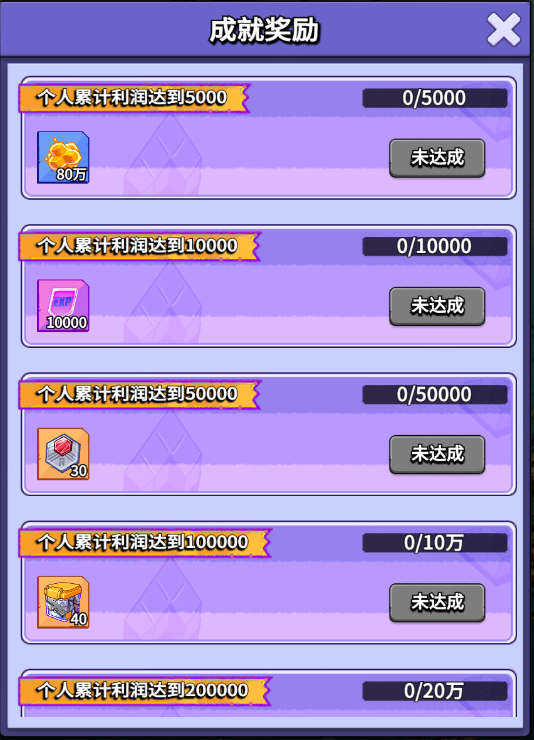 个人累计利润达到一定目标可获得超凡英雄万能碎片、超凡技能书、特级专武合金等奖励。