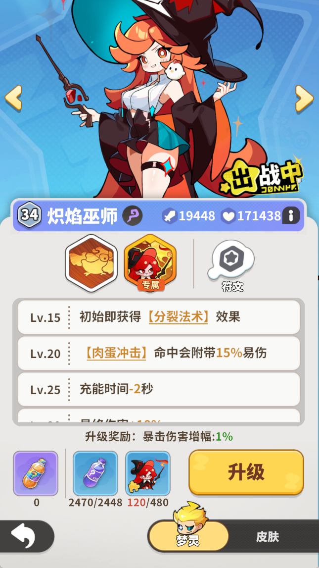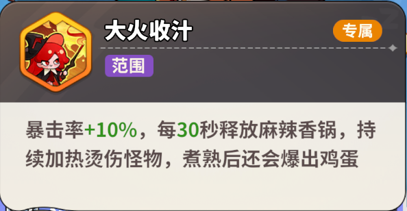技能介绍:炽焰巫师的暴击率提升10%,并且每30秒释放1个“大火锅”