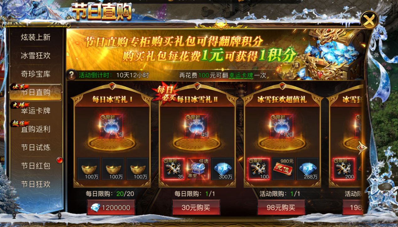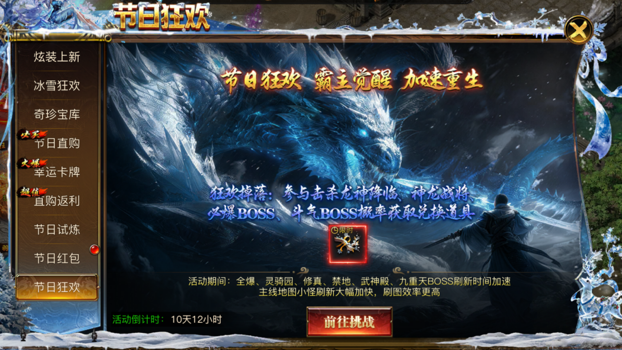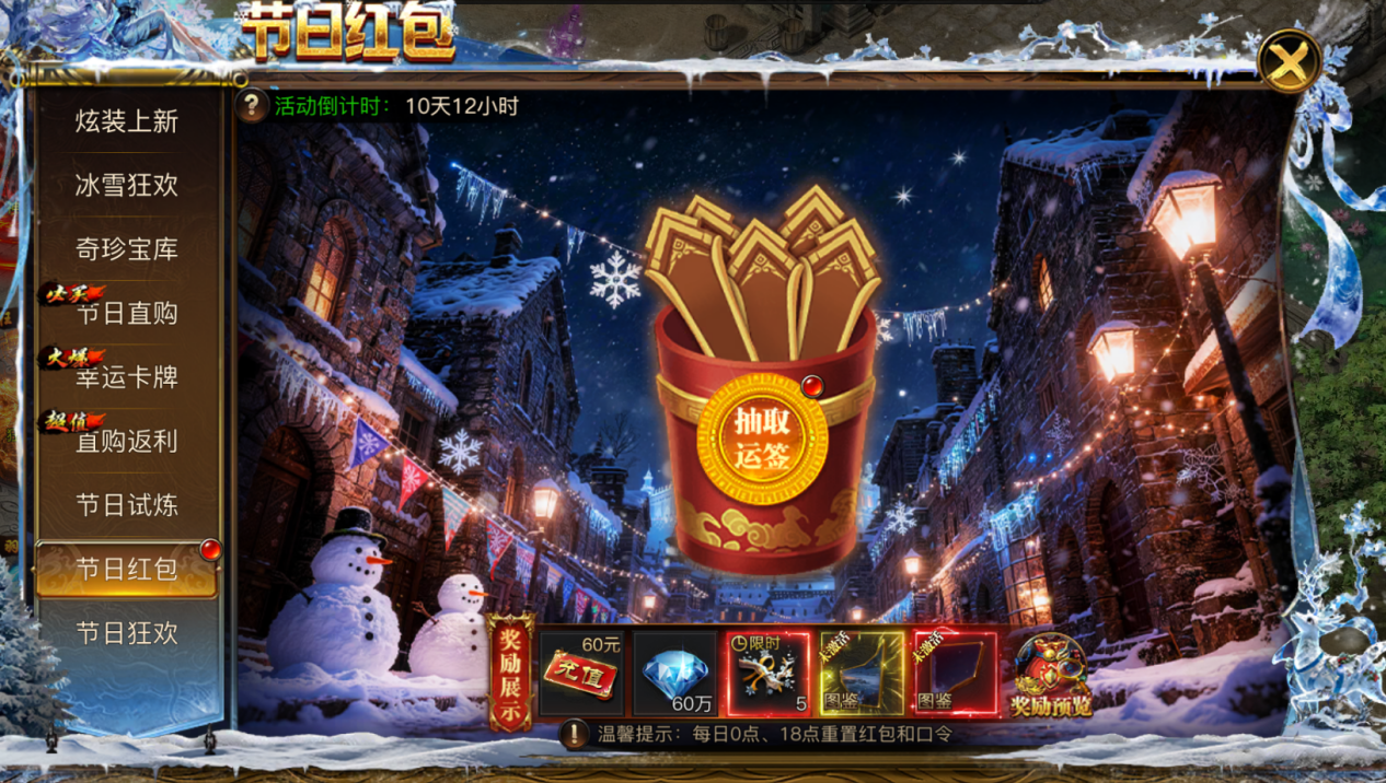 凛冬已至,霜雪覆城!在这银装素裹的奇幻世界里,一年一度的传奇冰雪节正式拉开帷幕!寒风呼啸中,隐藏着宝藏与机遇;冰晶闪烁间,暗藏挑战与荣耀。