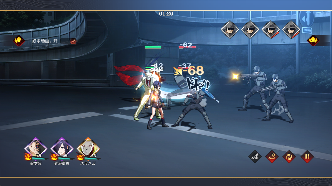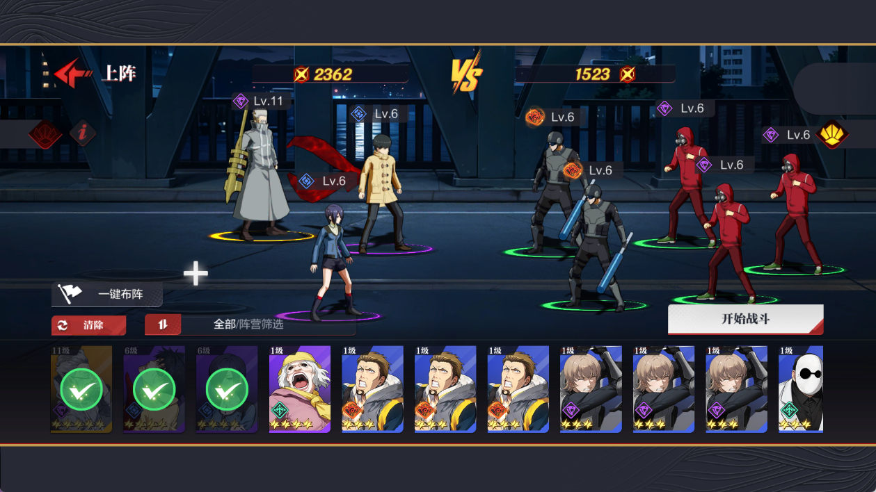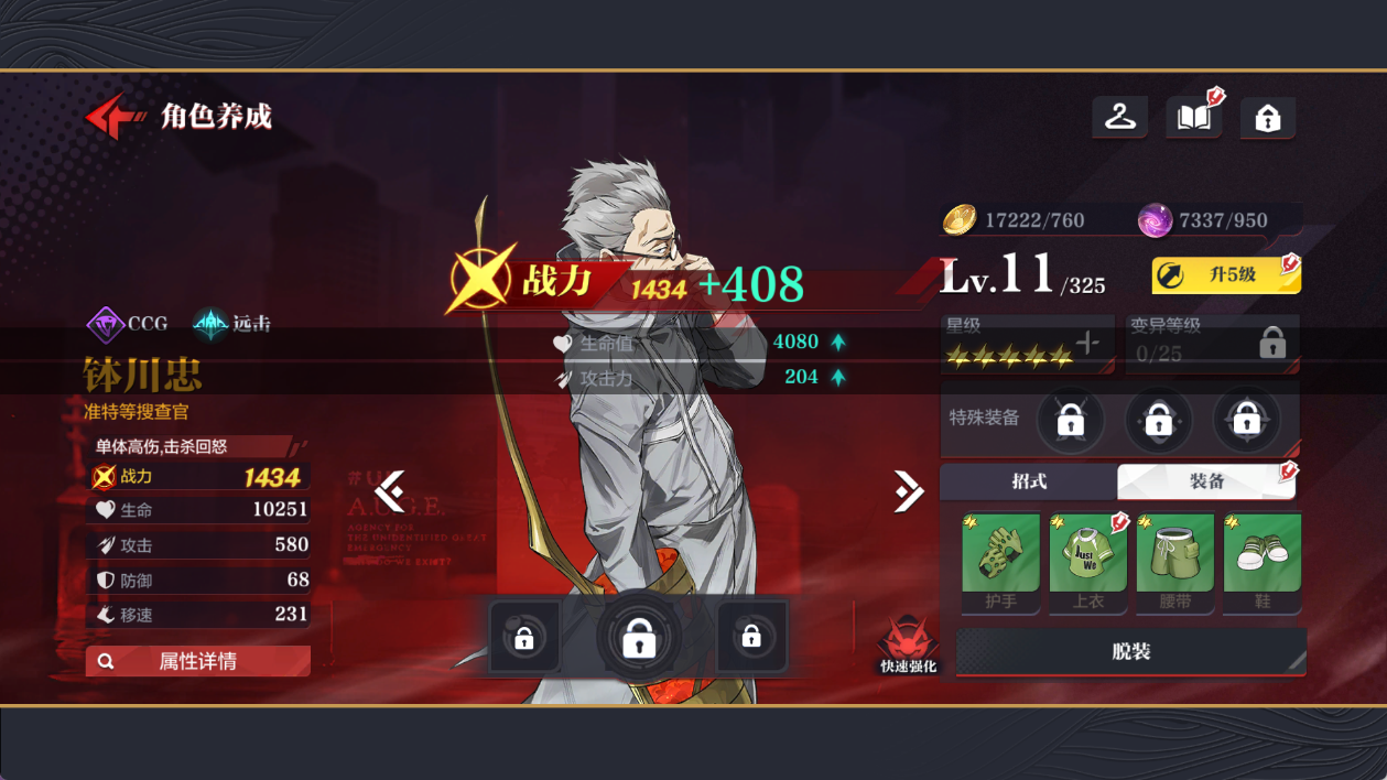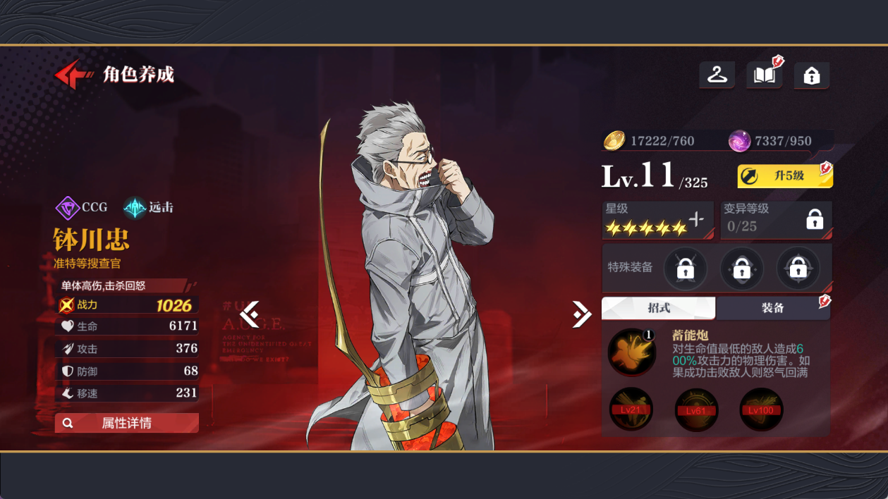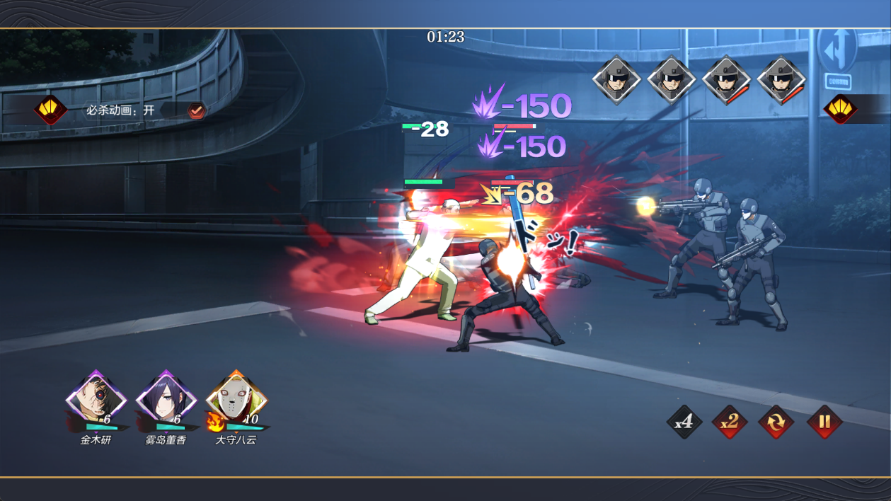 角色设计是《怪物生存战争》的另一大亮点。游戏收录了超过50名原作角色,从主角团(金木研、雾岛董香、绚都)到配角(入见佳耶、古间圆儿)均悉数登场,且每个角色的技能设计高度贴合原作设定。例如:金木研普攻为“鳞赫突刺”,大招“蜈蚣赫子·贯穿”可对直线敌人造成高额伤害,被动技能“半喰种”提升10%暴击率,完美还原了金木研在原作中强大的战斗力和半喰种的特殊体质;有马贵将普攻为“库因克连击”,大招“鸣神·雷落”可召唤雷电攻击全场,被动技能“CCG最强”提升15%防御,突出了他作为CCG最强搜查官的实力和威严;月山习普攻为“餐刀投掷”,大招“美食盛宴”可恢复己方全体20%生命值,被动技能“嗜血”在击杀敌人后提升5%攻击力,展现了他作为美食家的独特战斗风格和对鲜血的渴望。更令人惊喜的是,游戏为部分角色设计了“隐藏形态”这些设计既满足了原作粉丝的“角色收集欲”,也通过形态切换增加了战斗的策略性,玩家可以根据不同的战斗需求选择合适的角色形态,发挥出最大的战斗效果。