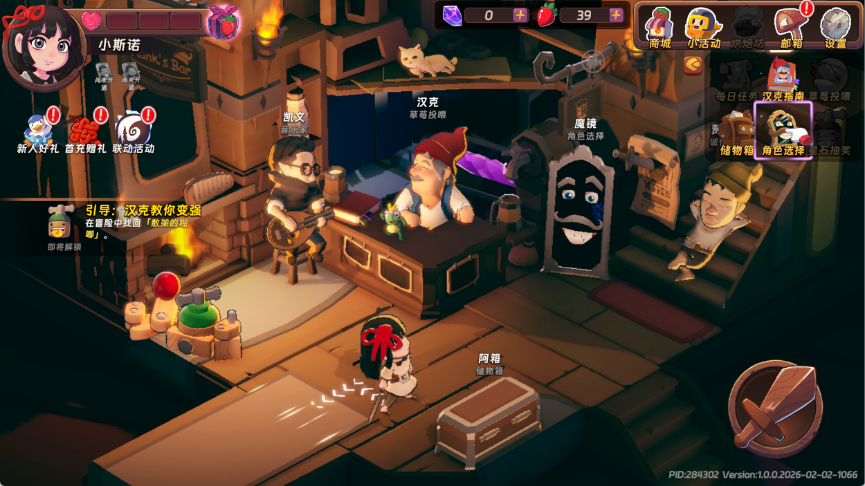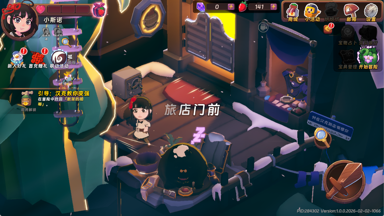 此外,游戏中还有草莓投喂、星石抽奖、旅店地下室、宝物占卜等特色玩法。草莓投喂可以让玩家在冒险中偶遇的NPC完成任务营救后,在旅店投喂草莓解锁专属职能,后续冒险中会随机遇到并提供辅助;星石抽奖使用冒险获得的玩具币,在“啪唧”处抽取星石、解锁宝物;旅店地下室中,冒险获得的星矿可在此让星妹解锁,不同大小星矿解锁时间不同,可开出草莓、法术重选卡、星石、宝物碎片等资源;宝物占卜则让玩家在出发冒险前,找旅馆外的鼹鼠聪聪占卜,可让角色开局额外获得1个宝物,前3次免费,后续消耗草莓,开通商城月卡可享受免费占卜。