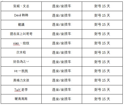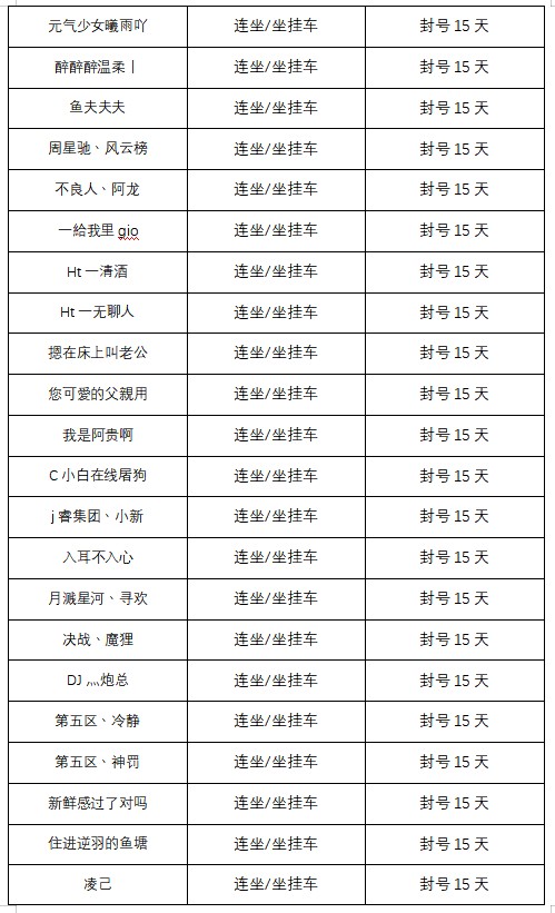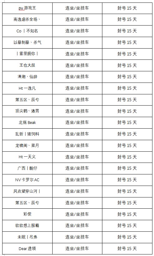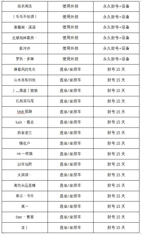 部分严重违规玩家名单,玩家均已受到惩罚。